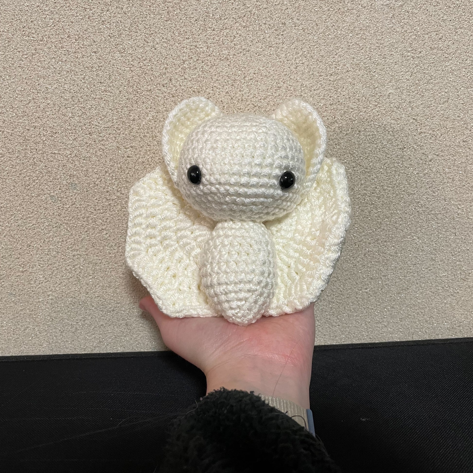 Met haar kleine vleugeltjes en lieve oogjes brengt ze precies de juiste mix van schattig en spooky in huis. Gehaakt met liefde van zacht Scheepjes Chunky Monkey garen en perfect als cadeautje voor Halloween of gewoon als knuffelmaatje het hele jaar door.